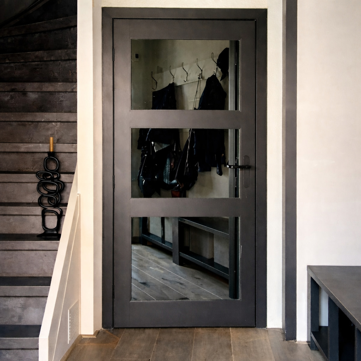 Een deurspiegel met geslepen randen