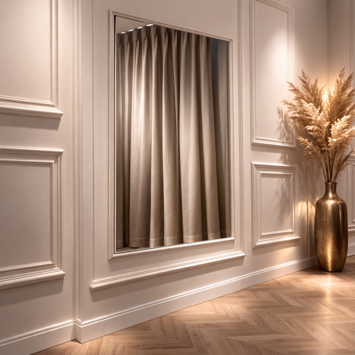 De schuine randen van de spiegel vangen en reflecteren licht, wat helpt om een ruimte lichter en groter te laten lijken.