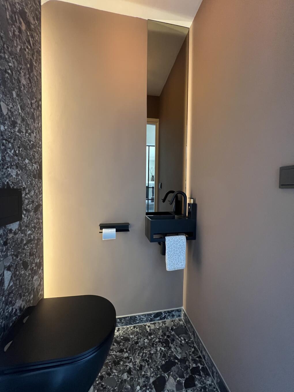 Een onverwachte, maar briljante plek is het toilet. Een elegante spiegel kan deze ruimte transformeren tot een stijlvolle en geïntegreerde hoek, perfect passend bij de rest van je interieur.