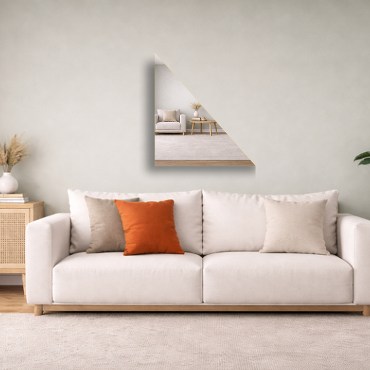 Een driehoekige spiegel wordt vaak toegepast in ruimtes waar een standaard spiegel niet goed aansluit. Denk bijvoorbeeld aan zolders, kamers onder een schuin dak, nissen of plekken naast maatwerkkasten. Juist op die locaties kan een afwijkende spiegelvorm zorgen voor een veel mooier en rustiger resultaat.