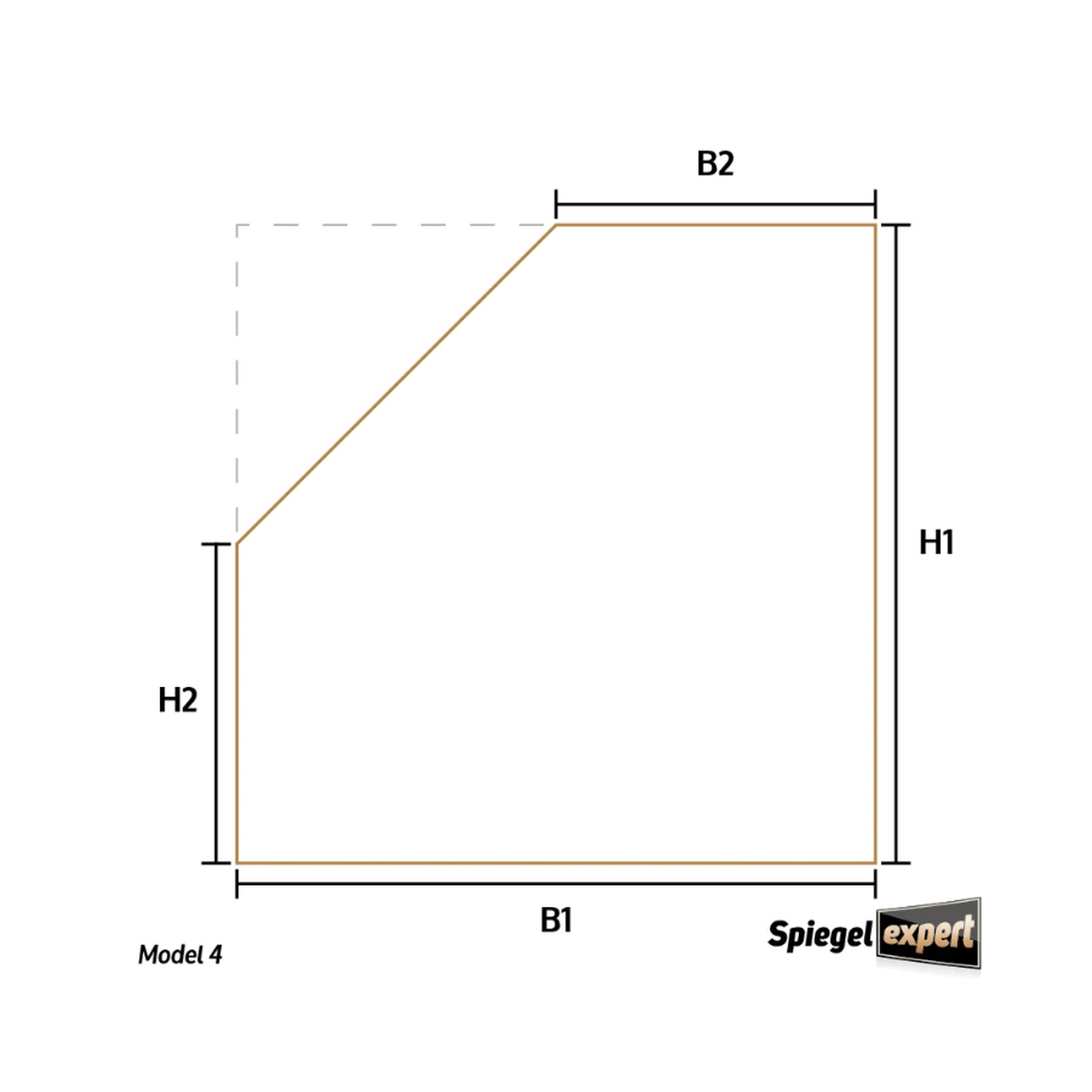 Een spiegel met een schuine zijde links aflopend wordt speciaal geproduceerd op basis van jouw opgegeven maten. Hierdoor volgt de spiegel precies de vorm van de wand of het plafond. Het resultaat is een strakke en verzorgde uitstraling zonder onnodige open ruimtes.