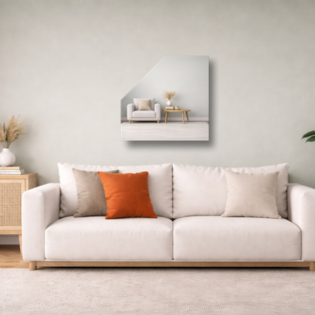 Dit is de standaard uitvoering. De randen zijn niet nabewerkt en kunnen licht scherp zijn. Deze optie wordt vaak gekozen wanneer de spiegel in een lijst of frame wordt geplaatst.