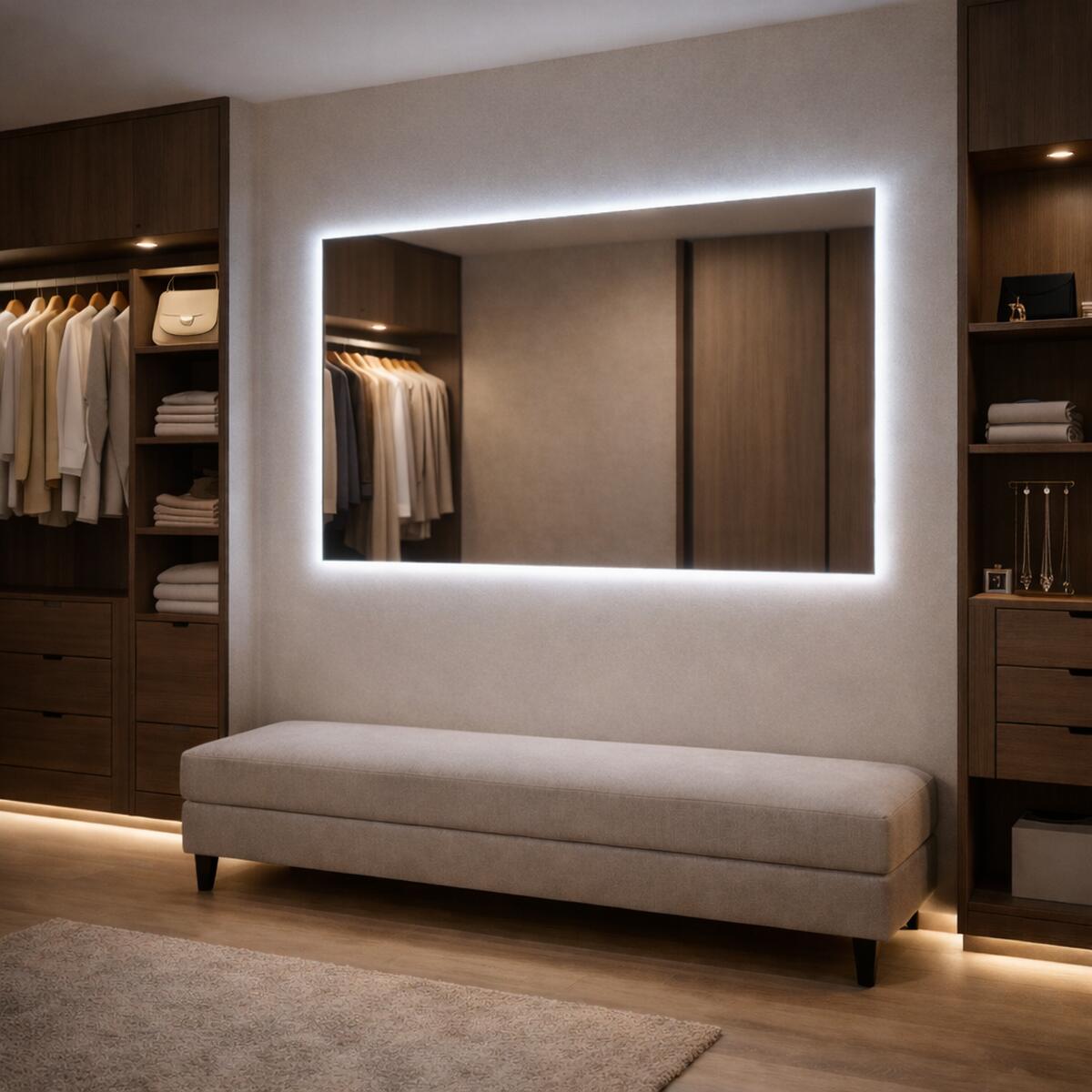 De juiste verlichting maakt het verschil. Daarom is deze rechthoekige spiegel met verlichting beschikbaar met meerdere lichtopties:
