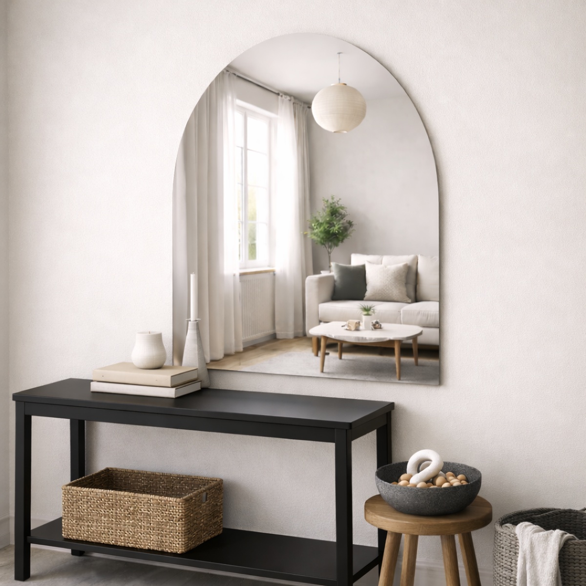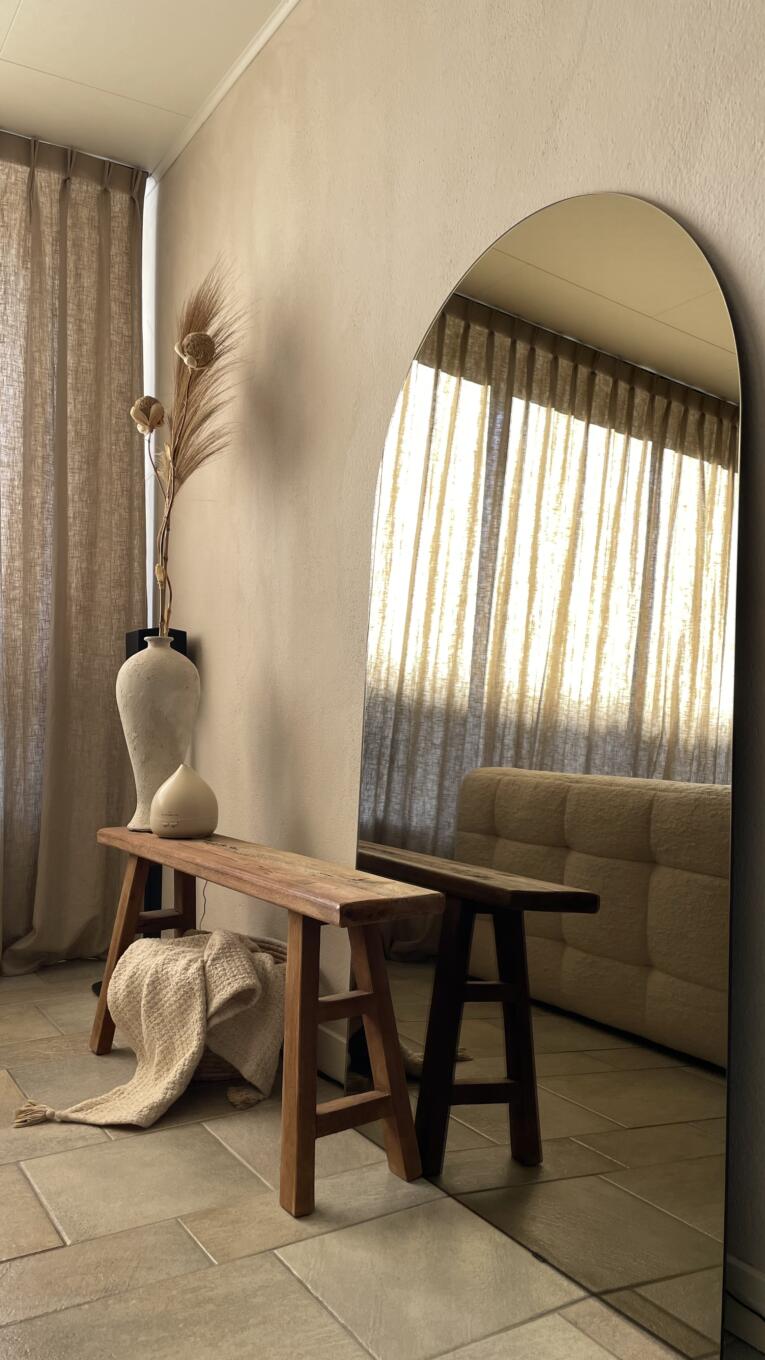 Een Scandinavische spiegel is meer dan een praktisch hulpmiddel: het is een decoratief element dat sfeer, licht en ruimte brengt. Dankzij de gebogen vorm breekt de spiegel strakke lijnen in de ruimte en voegt hij visuele rust toe. Ideaal boven een dressoir, in de hal of als elegante passpiegel in de slaapkamer.